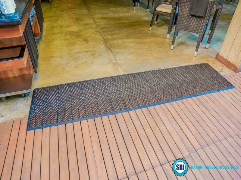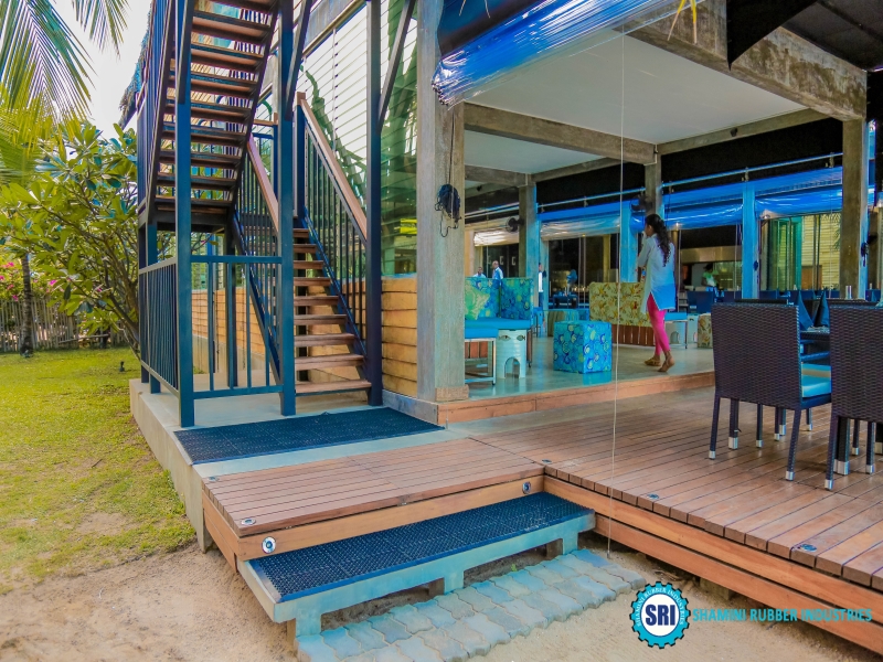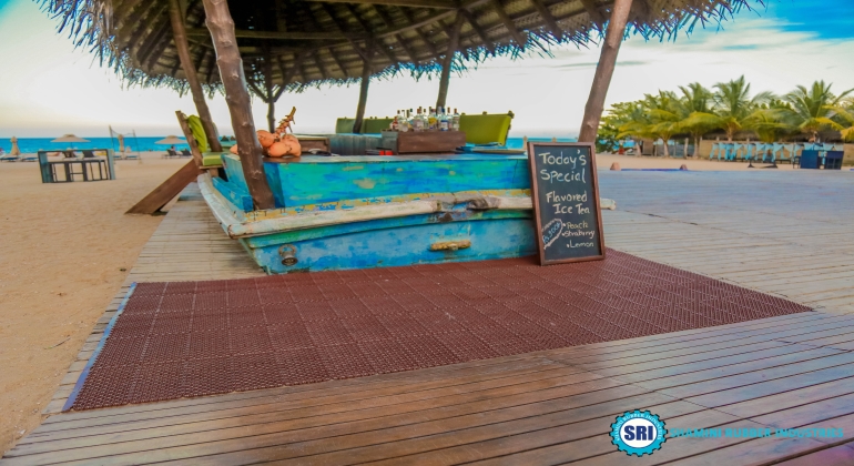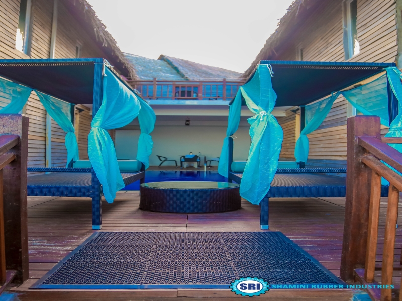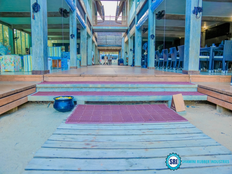 The rubber we used to create our entrance carpets are obtained from high quality rubber which is recyclable in nature, allowing us to set a high standard of quality that is incomparable. Maalu Maalu is another resort that uses our unique range of rubber carpets. The entrance of the resort consists of our Interlocking carpets with Edges which is Maroon in color. Our experts have provided various colors that perfectly coordinates with the architecture and environment of the Resort. Our interlocking carpets are used in the Resort’s Pool boat entrance too making it ideal for people to walk on without a risk of falling. Aside from offering excellent safeness, our carpets are also comfortable to walk on barefoot. Our non slip carpets are available in a range of sizes and attractive colors to suit any kinds of interiors. Sweet room and the restaurant entrance consists of our black color interlocking carpets making our carpets both ideal for indoor and outdoor premises.